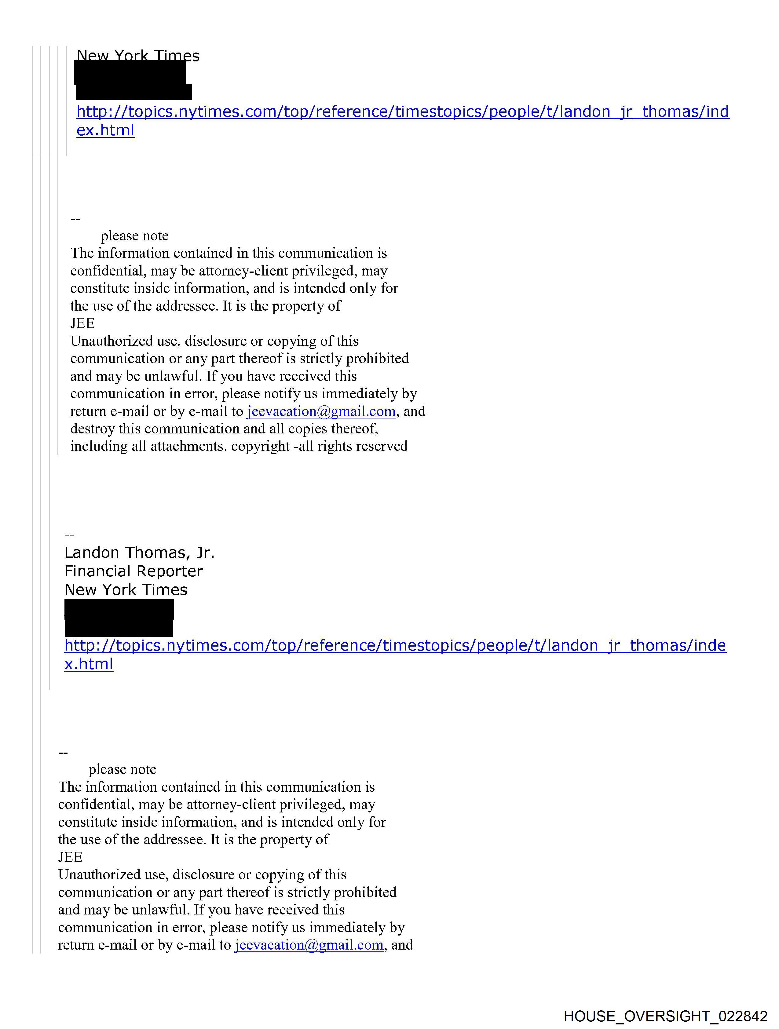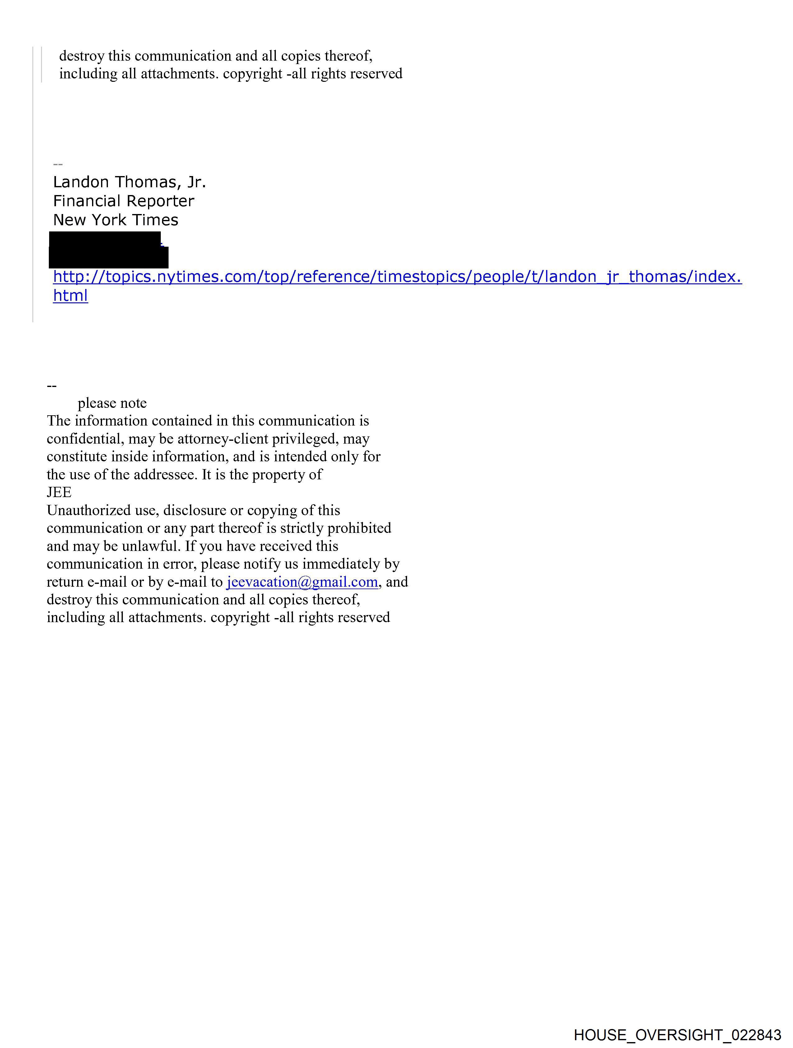 From: jeffrey E. [jeevacation@gmail.com] Sent: 1/16/2015 8:12:46 PM To: Thomas Jr., Landon [REDACTED] Subject: Re: How are you holding up? yes, but not if you own dollars. bitcoin collapse pound is the most overvalued of all' but its a tax haven. norwegina kroner weak. sfr ,dollar. only thing to own On Fri, Jan 16, 2015 at 3:56 PM, Thomas Jr., Landon <[REDACTED]> wrote: that is old news -- buy dollar and take a nap? Kind of like buying Apple? On Fri, Jan 16, 2015 at 2:52 PM, jeffrey E. <jeevacation@gmail.com> wrote: it is the begining world currencies are out of balance. brazil, etc On Fri, Jan 16, 2015 at 3:45 PM, Thomas Jr., Landon <[REDACTED]> wrote: I think the big issue is separating yourself from Andrew. I mean I can see why a statement might help in some way -- but its Andrew (not clinton and the rest) that is keeping the story alive. Until you are able to come forward and address that the story lives on. I mean in the end he had consensual sex with [REDACTED]. And [REDACTED] worked for you. The rest is atmospherics. You have moved on! People don't know that and cant accept that unless you say as much. Does franc drama worry you? Am writing on it now... On Fri, Jan 16, 2015 at 2:35 PM, jeffrey E. <jeevacation@gmail.com> wrote: very well, my reputation has admittedly taken a hit. however, again, more calls re currency than i can handle. in addition I am considering a statement and positon that Out of respect and love for my former girlfrend I have tried to keep her out of my mess. she was never questioned, or subpeonaed. her name never surfaced.. I thought it right as a friend to protect her name. however during the entire [REDACTED] [REDACTED] time she was my serious girlfriend. She traveled with me almost everywhere, each house, she is on the plane many many times. she knew and remembers [REDACTED] She never saw anything that [REDACTED] claims. She can confirm 1. I was never alone at the house. staff, friends etc. , no girl ever complained, not once. 2. jane doe 1 and 2 , were local strippers, that would call all the time asking if they could do massages. . . they left message after message. 3. We had a serious love relationship, I had promised her not to involve her in my story as it was so sordid. . she was 22 - 24 at the time. . 4 she has photos after photos showing we were together. . 5 she knows clinton was never on the island. 6 she knows no sex with steven hawking, she knows no sex with ehud as he was also never on the island. 6 she is 38 years old now and presentable. . 7 She woudl acknowledge that these girls asked to bring their friends . many of their best friends sat in the kitchen while they gave massages outside on the terrace. ( no sex ). . they certainly looked over age. nevr heard anyone say otherwise. , Jeffrey never asked for underage, that is crazy, . . 8 . [REDACTED] answered the phones. served coffee. . there were many massage people , men women, aged up to 60. On Fri, Jan 16, 2015 at 3:32 PM, Thomas Jr., Landon <[REDACTED]> wrote: Landon Thomas, Jr. Financial Reporter [REDACTED] [REDACTED] http://topics.nytimes.com/top/reference/timestopics/people/t/landon_jr_thomas/index.html please note The information contained in this communication is confidential, may be attorney-client privileged, may constitute inside information, and is intended only for the use of the addressee. It is the property of JEE Unauthorized use, disclosure or copying of this communication or any part thereof is strictly prohibited and may be unlawful. If you have received this communication in error, please notify us immediately by return e-mail or by e-mail to jeevacation@gmail.com, and destroy this communication and all copies thereof, including all attachments. copyright -all rights reserved HOUSE OVERSIGHT 022841 HOUSE OVERSIGHT 022842 HOUSE OVERSIGHT 022843